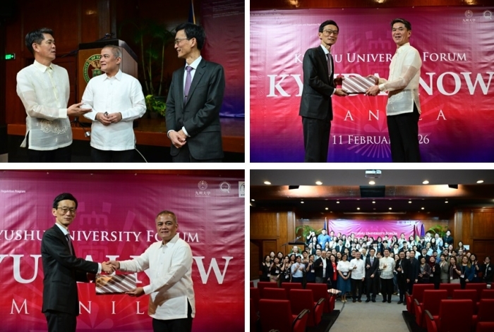 On 11 February 2026, Ambassador ENDO Kazuya attended the Kyushu University Forum: KYUDAI NOW – Manila Edition at the Malcolm Theater, University of the Philippines (UP) Diliman, Quezon City. Also in attendance to the event were UP Vice President for Research and Innovation Dr. Joel Joseph S. Marciano Jr. and Kyushu University Vice President Professor SHIMIZU Shuji.
