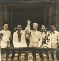 [L] The then His Imperial Highness Crown Prince Akihito and Princess Michiko with General Emilio Aguinaldo at the balcony of the National Independence Shrine in Cavite ©National Independence Shrine