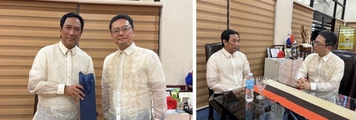 同日、大野臨時代理大使は、カルロス・ペテリィヤ・レイテ州知事を表敬し、レイテ州における日比協力の可能性について意見交換を行いました。